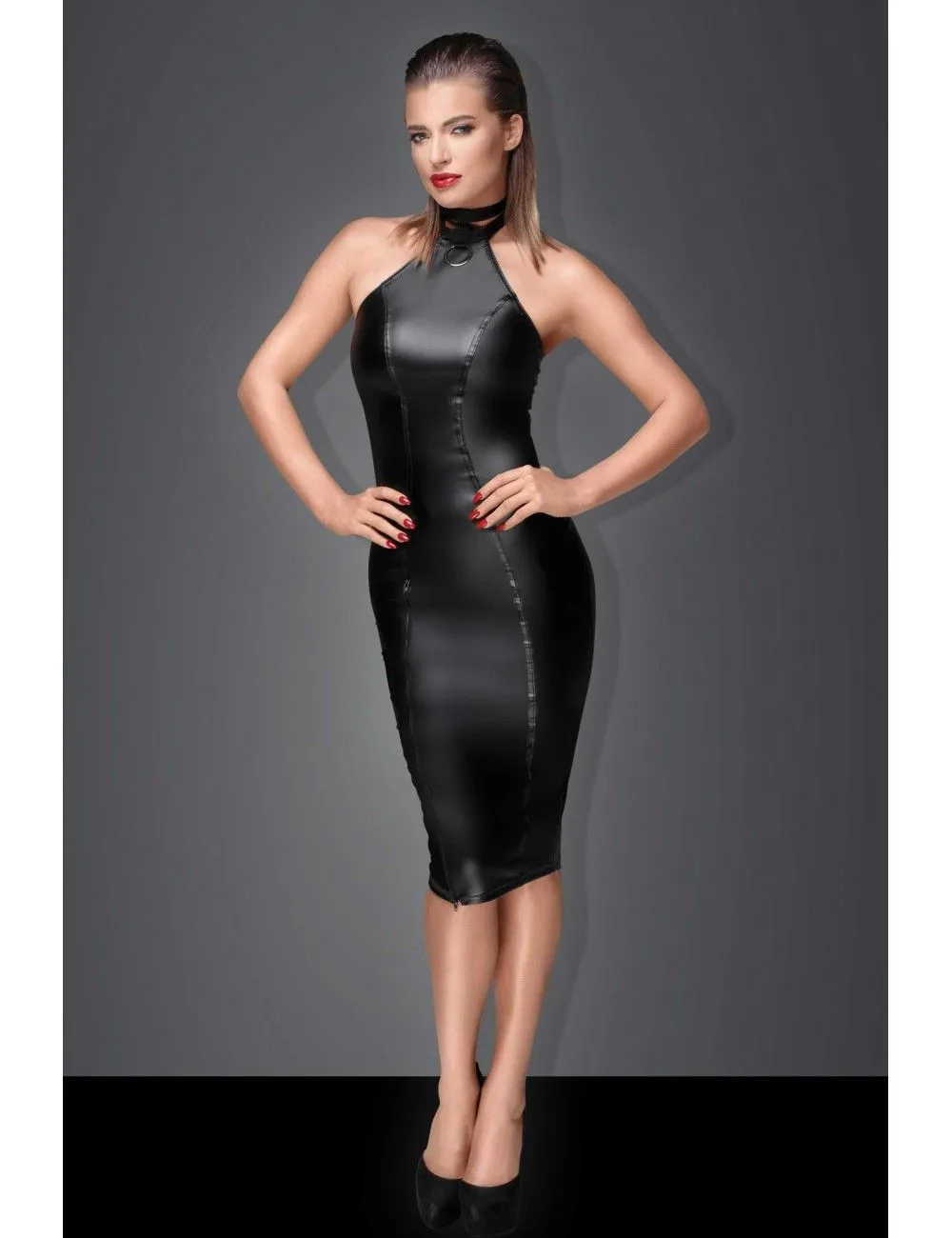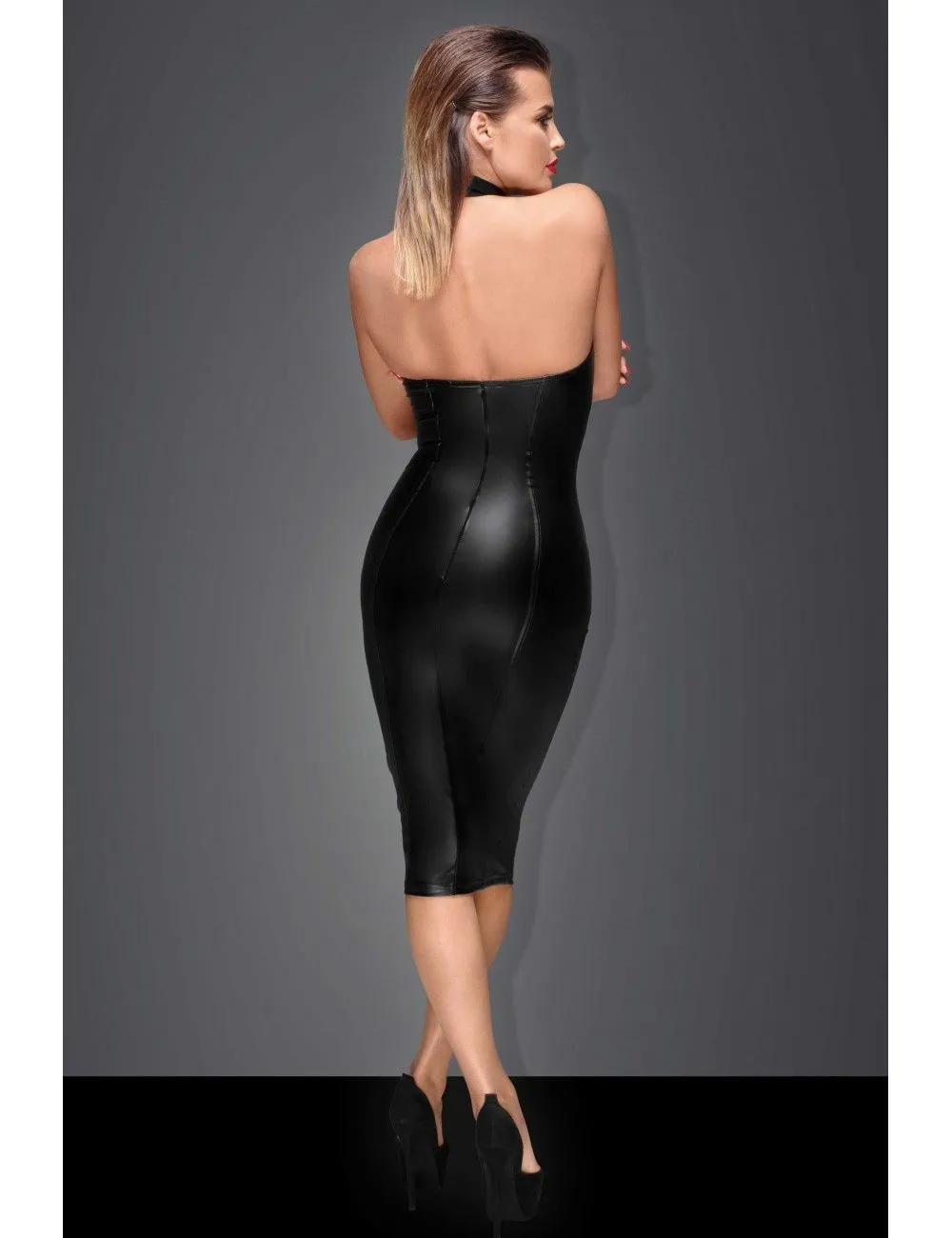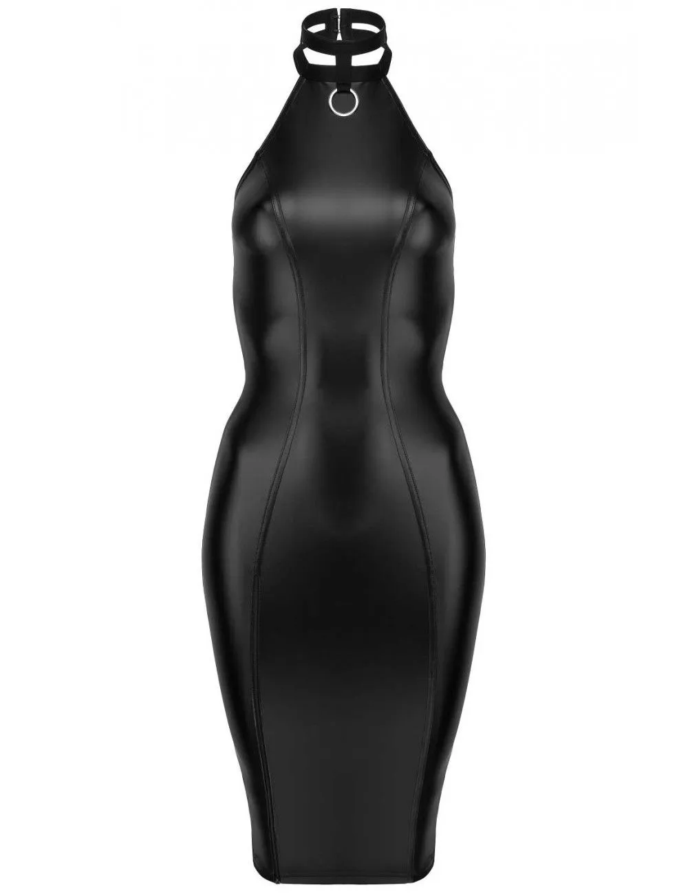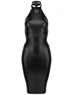 Robe longue et moulante en wetlook noir sans manches pour une belle mise en beauté de votre silhouette.