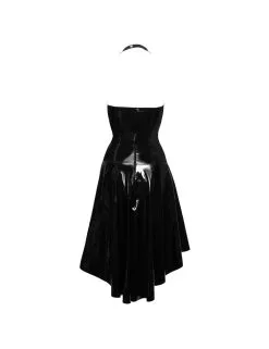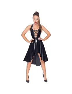 Le décolleté très échancré avec laçage dessus est très accrocheur tandis que les pressions et le zip dans le dos ajoutent une touche érotique à la robe.