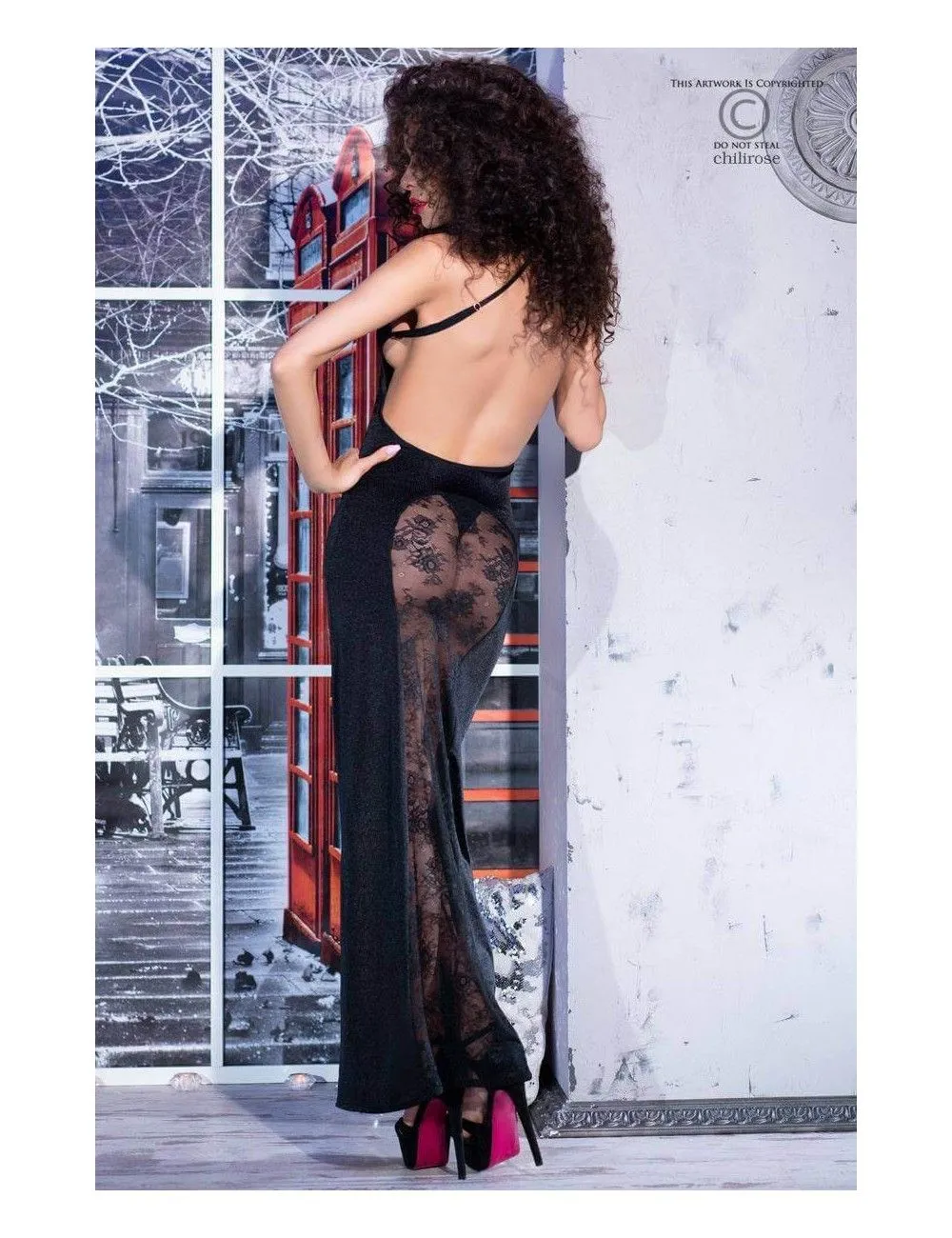 Robe Longue Satin et Dentelle Transparente Chilirose