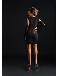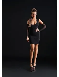 Robe noir moulante dotĂ©e d’un jolie dĂ©colletĂ© en V.