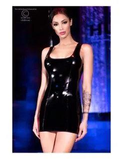 Robe en vinyle noir brillant. Un modèle classique dans votre garde robe avec toute la sensualité de cette maille brillante et attirante.