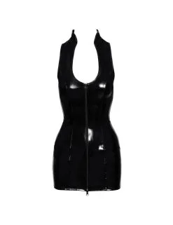 Robe courte sans manches de Black Level, entièrement en laque noire brillante.