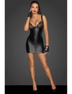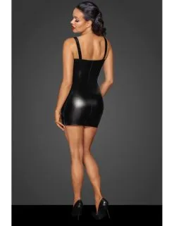 Robe en wetlook noir mat courte avec un joli décolleté.