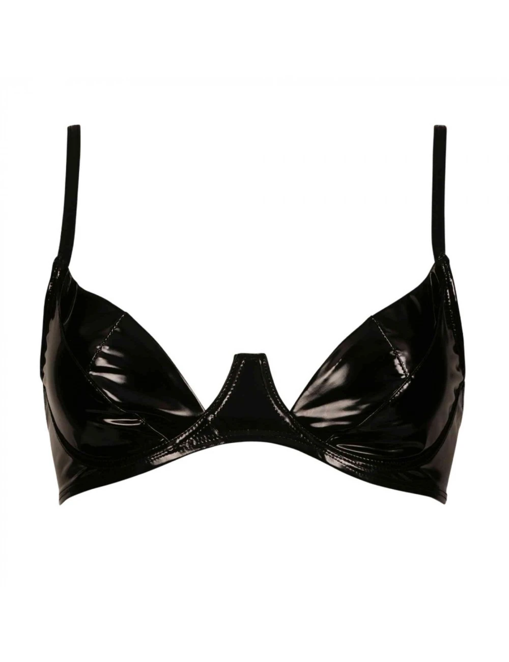 Soutien-gorge en vinyle noir avec bonnet décolleté qui mettra le galbe de vos seins en valeur.