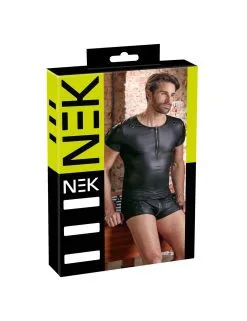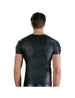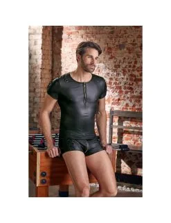 T-shirt coupe droite en belle matière noire Ă l’aspect mat avec une courte fermeture Ă©clair en laiton sur le devant.