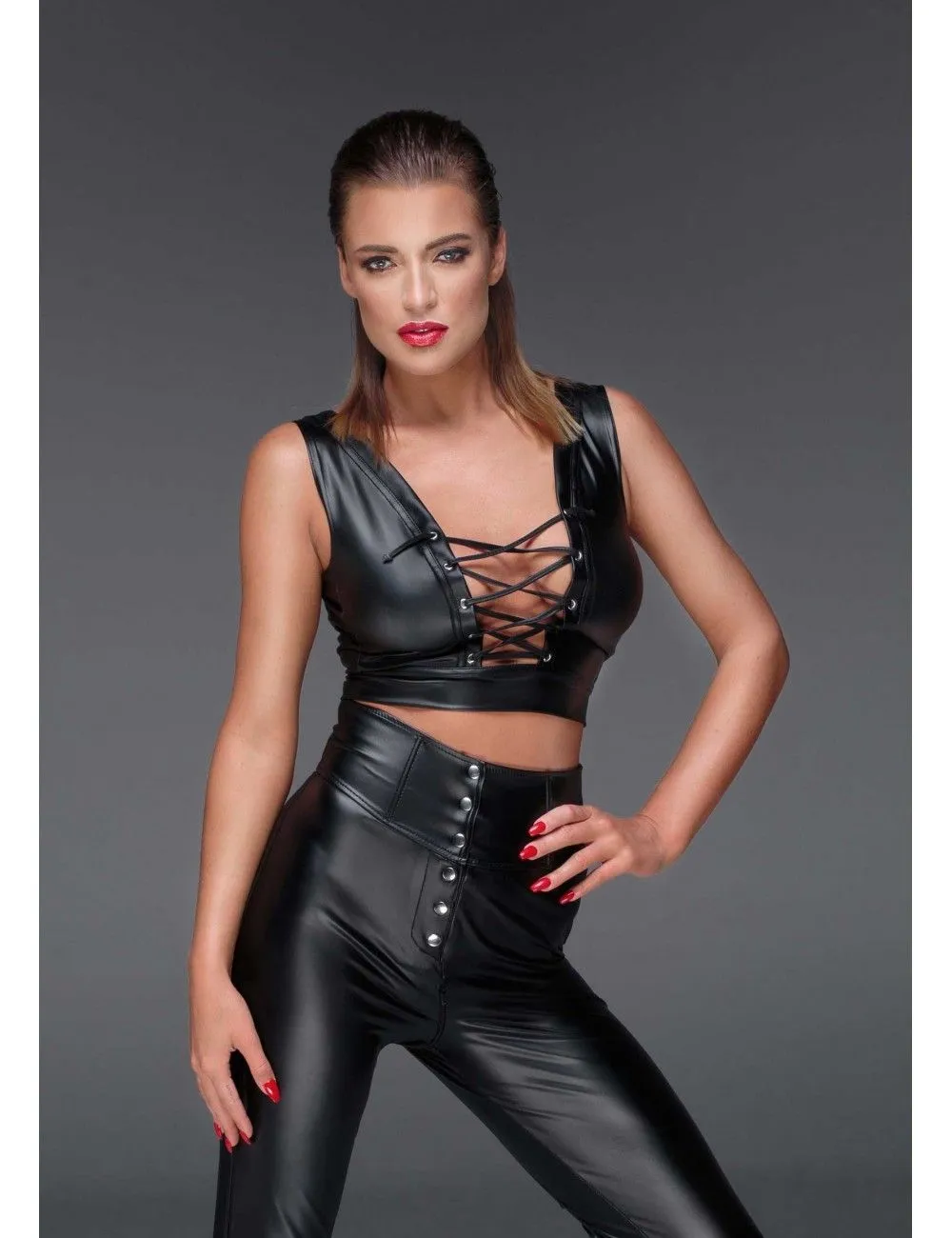 Haut sexy pouvant être associé à la jupe wetlook noir laçage érotique.