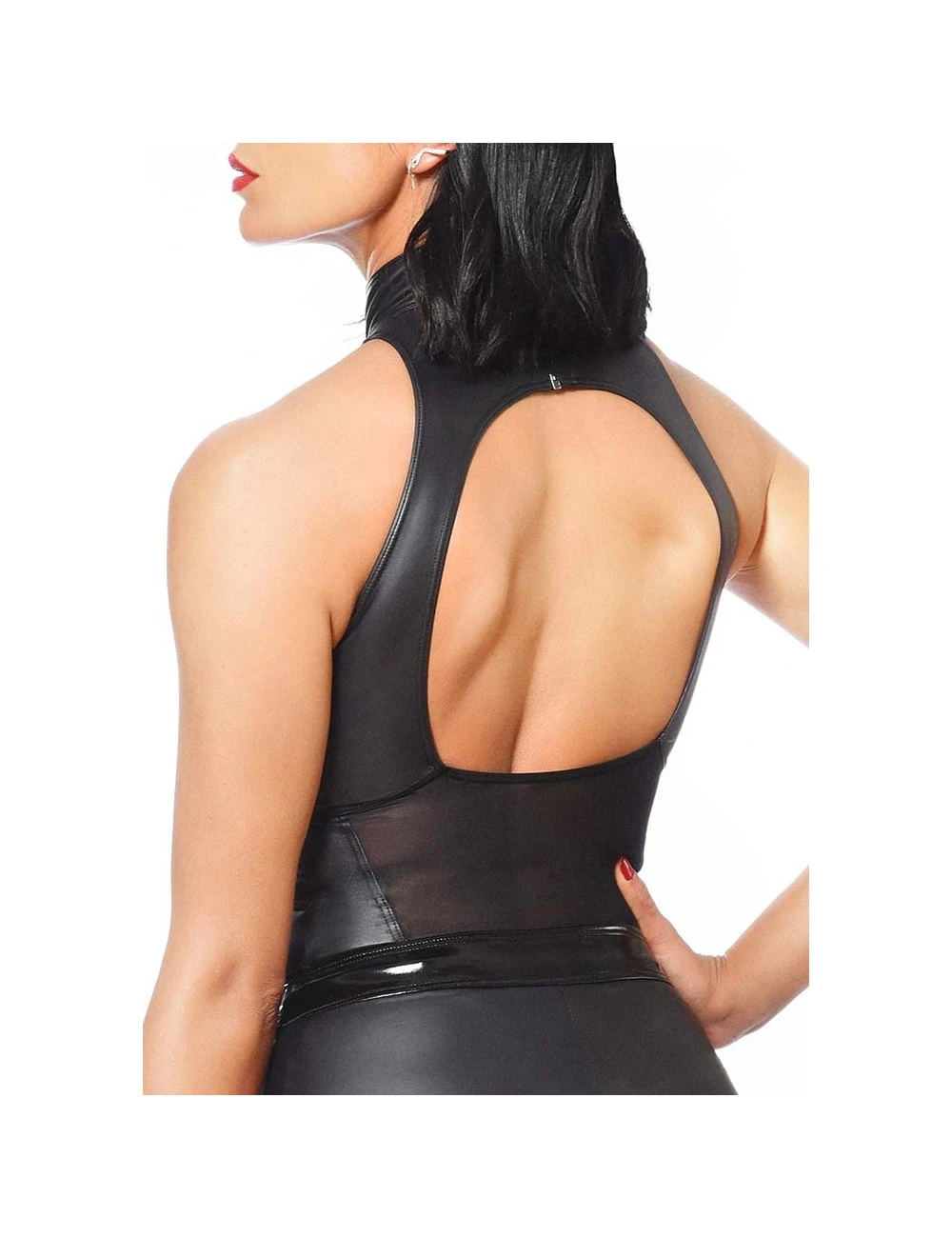 Top wetlook pour mettre votre poitrine en valeur avec ses découpes et son décolleté.