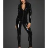 Une tenue vinyle avec de nombreux ornements pour un effet élégant et attirant. La maille est douce, légèrement extensible et confortable à porter. Contrastez la maille brillante avec une lingerie sexy en dentelle transparente.