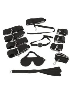 brassard de cou (5,5 cm de haut) et 1 bâillon de bouche (Ø 4,1 cm) avec sangle réglable.
